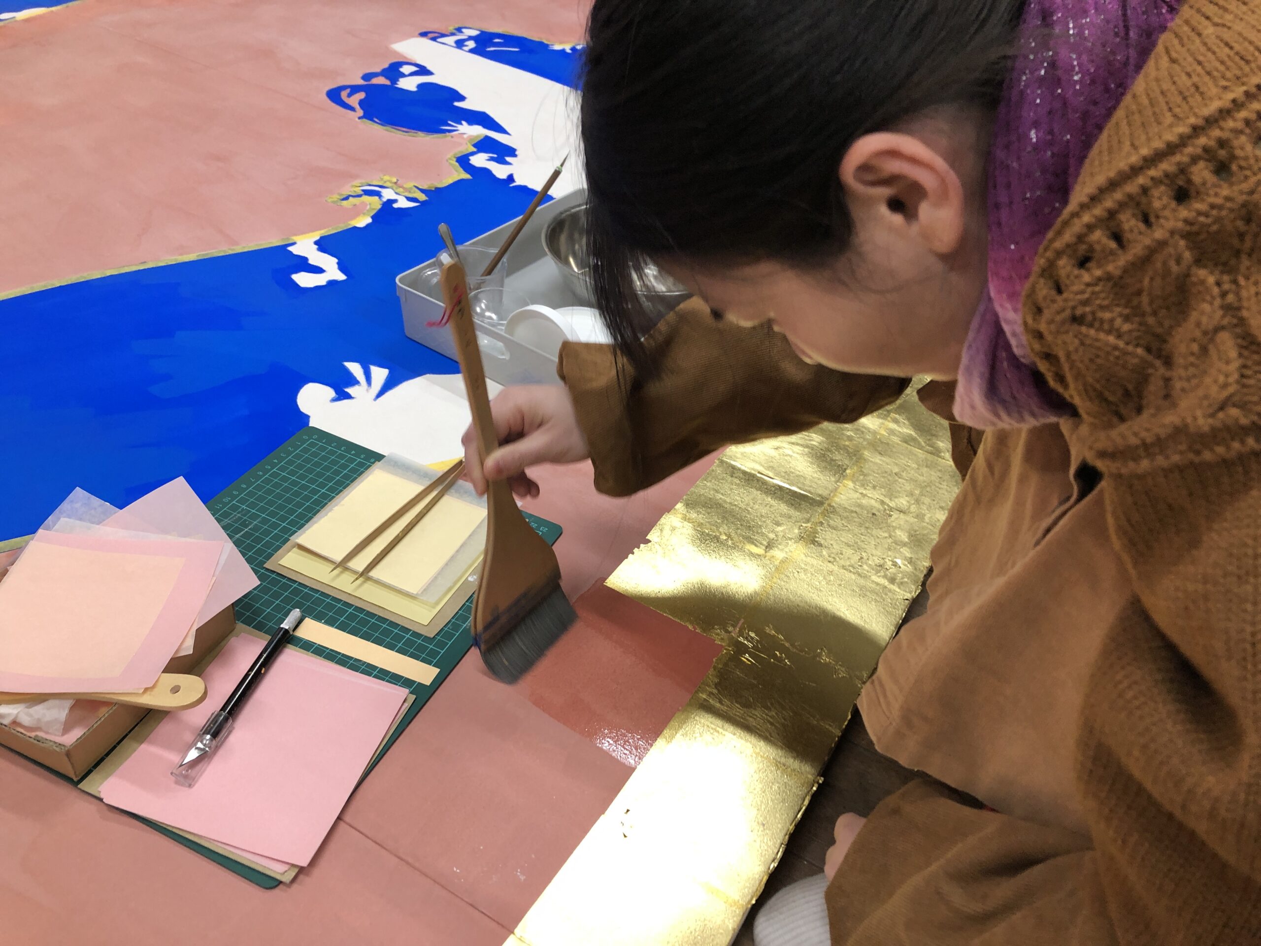 修士課程修了制作《鬼退治合戦図》(横340cm × 縦178cm)を、ただいま制作中です。